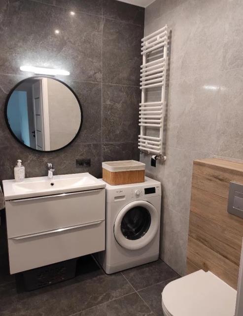 Cichy apartament o powierzchni 46m2 znajduje się na pierwszym piętrze w budynku oddanym do użytkowania w 2021r. na zamkniętym i całodobowo strzeżonym osiedlu. Wyjątkowa lokalizacja gwarantuje najwyższy komfort. Bezpośrednio przy budynku znajduje się przystanek autobusowy z którego w 8 min. dotrzemy do stacji metra Wierzbno. W pobliżu znajduje się PKP Służewiec z którego można dojechać do lotniska lub centrum warszawy. W niedalekiej odległości linia tramwajowa - na ulicy Wołoskiej i Marynarskiej. W pobliżu apartamentu: Galeria Mokotów, Biedronka, Żabka, drogeria Hebe, piekarnie oraz liczne restauracje i placówki opieki zdrowotnej LUX MED oraz Medicover. Mieszkanie wykończone w wysokim standardzie. Nigdy wcześniej nie było użytkowane. W skład mieszkania wchodzą: salon, kuchnia, sypialnia, łazienka, hol oraz duży balon. Mieszkanie jest w pełni wyposażone: Kuchnia - lodówka, zmywarka, piekarnik, mikrofalówka, płyta indukcyjna, ekspres do kawy oraz wszelkie naczynia. Łazienka - duży prysznic, pralka oraz suszarka do włosów. Sypialnia - łoże, duża szafa oraz szafka nocna. Salon - duża narożna sofa, lampa stojąca, stoliki kawowe, telewizor, szafka RTV oraz okrągły stół z dwoma krzesłami. Hol- duża szafa Ponad to apartament wyposażony jest w deskę do prasowania, żelazko, odkurzacz oraz domofon z kamerą. Miejsce parkingowe w garażu podziemnym oraz komórka lokatorska za dodatkową opłatą. Apartament idealny dla pary lub singla. Nie akceptujemy zwierząt. Najem minimum na rok.