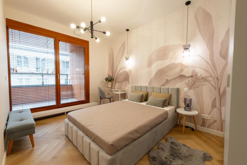 Mieszkanie o powierzchni 46 m2 składa się z salonu, sypialni i aneksu kuchennego, balkonu oraz przestronnej łazienki z prysznicem.