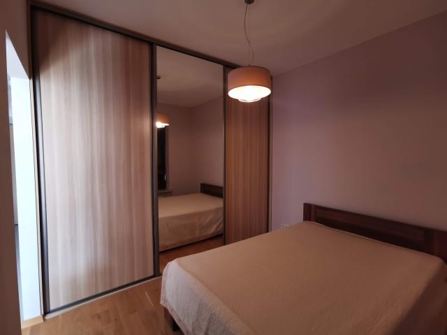 Mieszkanie składa się z: dużego salonu z otwartą kuchnią, sypialni, łazienki z kabiną natryskową i przedpokoju. Duże panoramiczne okna wychodzą na południe, co sprawia, że apartament jest bardzo jasny i słoneczny.
