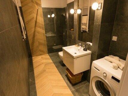 Mieszkanie jest nowe. Jest urządzone i umeblowane w nowoczesny, a zarazem funkcjonalny sposób, z dbałością o każdy detal. Cześć mebli przywieziona przez nas z Azji napewno niepowtarzalna. Zostało wyposażone w potrzebne sprzęty AGD firmy BOSCH (wśród nich: pralka, lodówko- zamrażarka, płyta elektryczna, piekarnik, okap, zmywarka).
