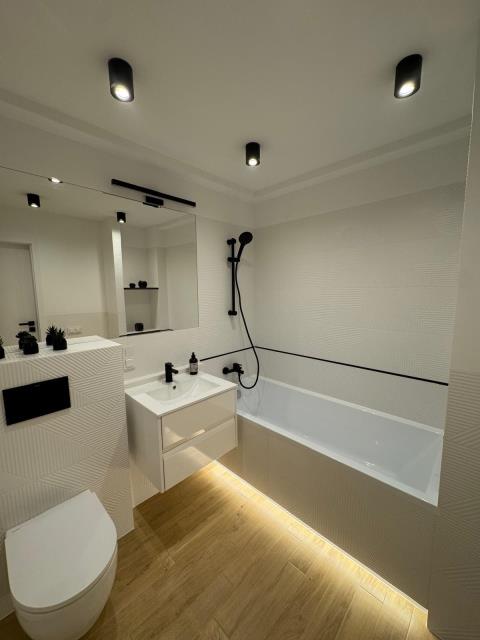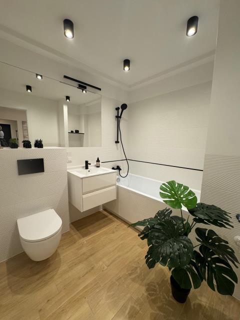 Mieszkanie przeszło gruntowny remont z wymianą wszystkich instalacji w tym instalacji elektrycznej i hydraulicznej. Na podłogach nowe wylewki i parkiet dębowy. Na ścianach tynki i gładzie. Wymienione zostały drzwi, płytki i oświetlenie. Mieszkanie nie jest zamieszkane.