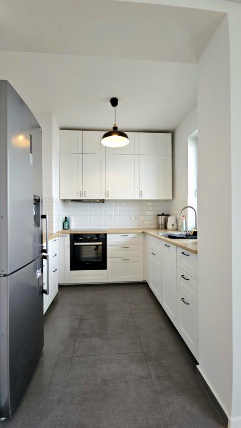 Wyposażenie obejmuje wysokiej jakości sprzęt AGD (piekarnik, kuchenka, lodówka z zamrażarką, zmywarka), który sprawia, że gotowanie staje się przyjemnością.